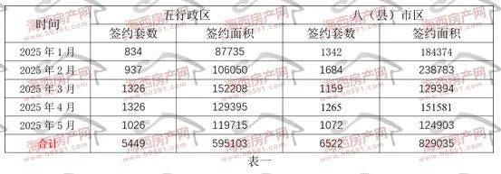 表一为2025年1月-5月福州五行政区+八县(市)区住宅签约明细表。今年前5月,福州五区住宅签约5449套、595103㎡,月均签约1089.8套、119020.6㎡,市场签约数据有进一步走低的可能。