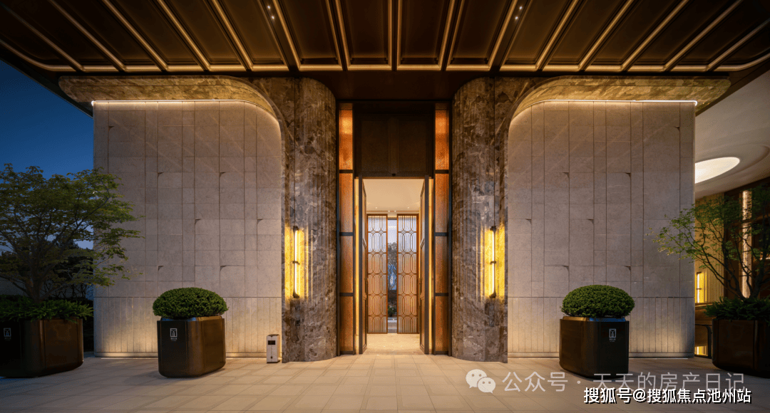 :8.5 米的门头高度搭配精致的材质与灯光设计,营造出类似高端酒店、CBD 写字楼的入口仪式感,让居者每次归家都能感受到专属的尊崇感,强化社区的高端属性。