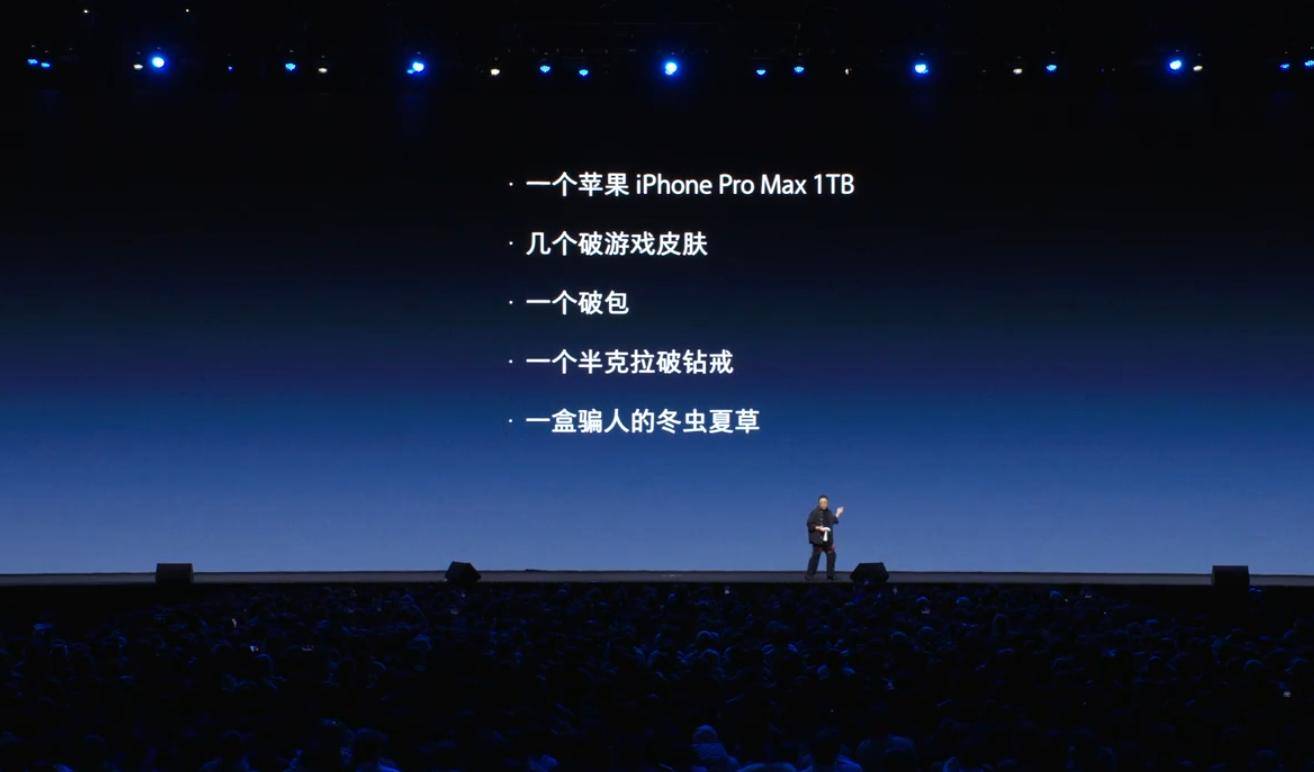 为了论证这个外骨骼产品的价格比较合理,罗永浩拿出了游戏譬如、包、钻戒等做论证,甚至还称冬虫夏草是骗人的,钻戒和包是破的。
